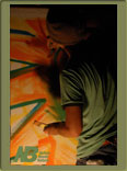 1964年京都生まれ。 東京造形大学卒業後、20代を熱い国々で放浪。 「自由に表現すること、自然の一部であること」をテーマにドローイング・版画・Tシャツ・ライブペイントを中心に国内外を問わずフィールドを広げる。95年「COOL COUNTER」でラスタマンのライフスタイルを油絵で表現。97年「UN GRAN SOL」では和をテーマにした空間を演出。そし2000年「DEEP AND LATE」では赤2002年「BLUE PAIN」「PAPA LAND」では青をテーマに新しい色の世界を表現。05、06年とGreen Room Festival にも出演。 各地でさまざまなミュージシャン達とのセッションライブペイントや、バンコク・バハカリフォルニア・エチオピアの壁画をはじめメキシコでは陶器など、旅を通しての作品を描き続けている。