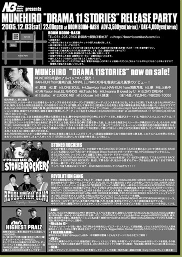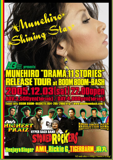 ハスキーボイスと現場をヒートアップさせるそのステージングは確実にオーディエンスを引きつける。トラックに関しても本人自らもJAMAICAへ行き、制作。もちろん作詞は全曲担当。その全容のコンセプトは「情熱」そして後半は恋愛からなる男性と女性の事情を多彩な角度から描いた、いわばドラマである。feat.HAN-KUNfor 湘南乃風等、MINMI,EL NANDOと等が客演。BRIER(ブライヤー)「I am...」Ladies Night feat.KANAKO名義で初めてコンビネーションに参加、現場でもその実力、頭角を確実に発揮した。アーティスト名をKANAKOからMUNEHIROに改めFIRSTALBUM「DRAMA 11 STORIES」を遂にリリース。